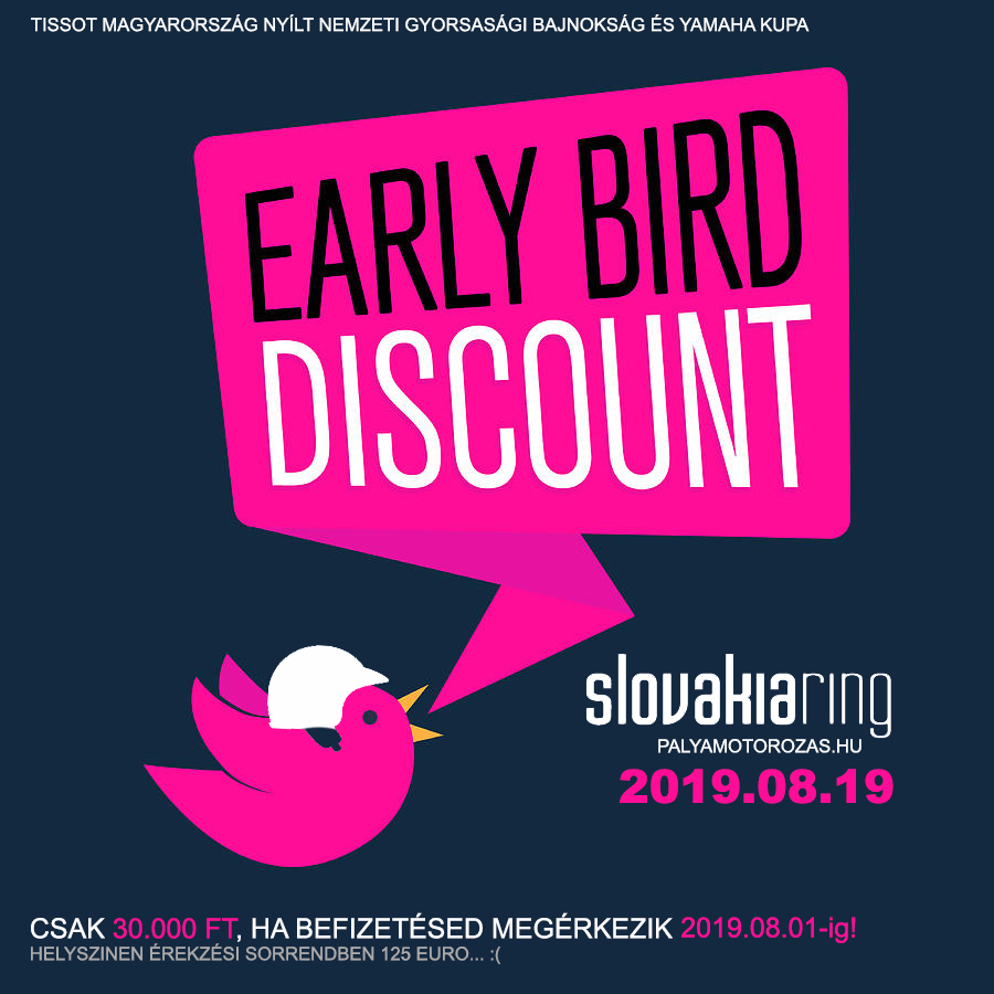Új pályán a Magyar Bajnokság és a magyar hobbi riderek! Slovakiaring. A Hungaroringen tartott nyílt-napunkhoz és versenyünkhöz hasonlóan a slovakiaring is korlátozott létszámú és ezért előre kell jelentkeznetek és fizetnetek. Csak 120 szabad jegyünk van. Jelentkezz most!